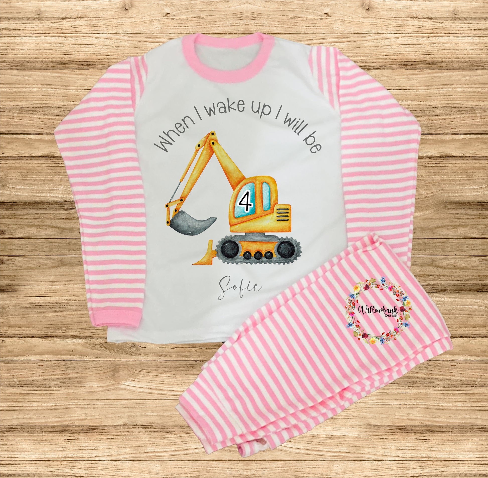 When I Wake Up I Will Be - Personalised Construction Vehicle Birthday Pyjamas